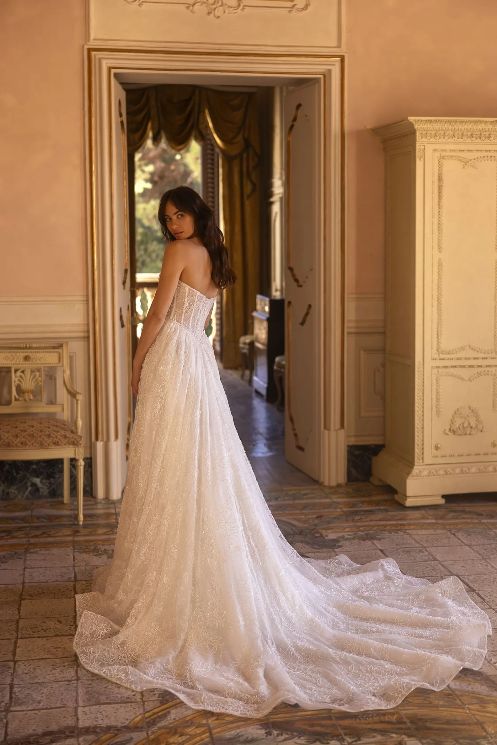 Gli abiti sono immaginati per soddisfare la sposa che fin da bambina ha sognato come sarebbe stato il suo abito da sposa il giorno del suo matrimonio, abiti da principessa della sua fiaba preferita.